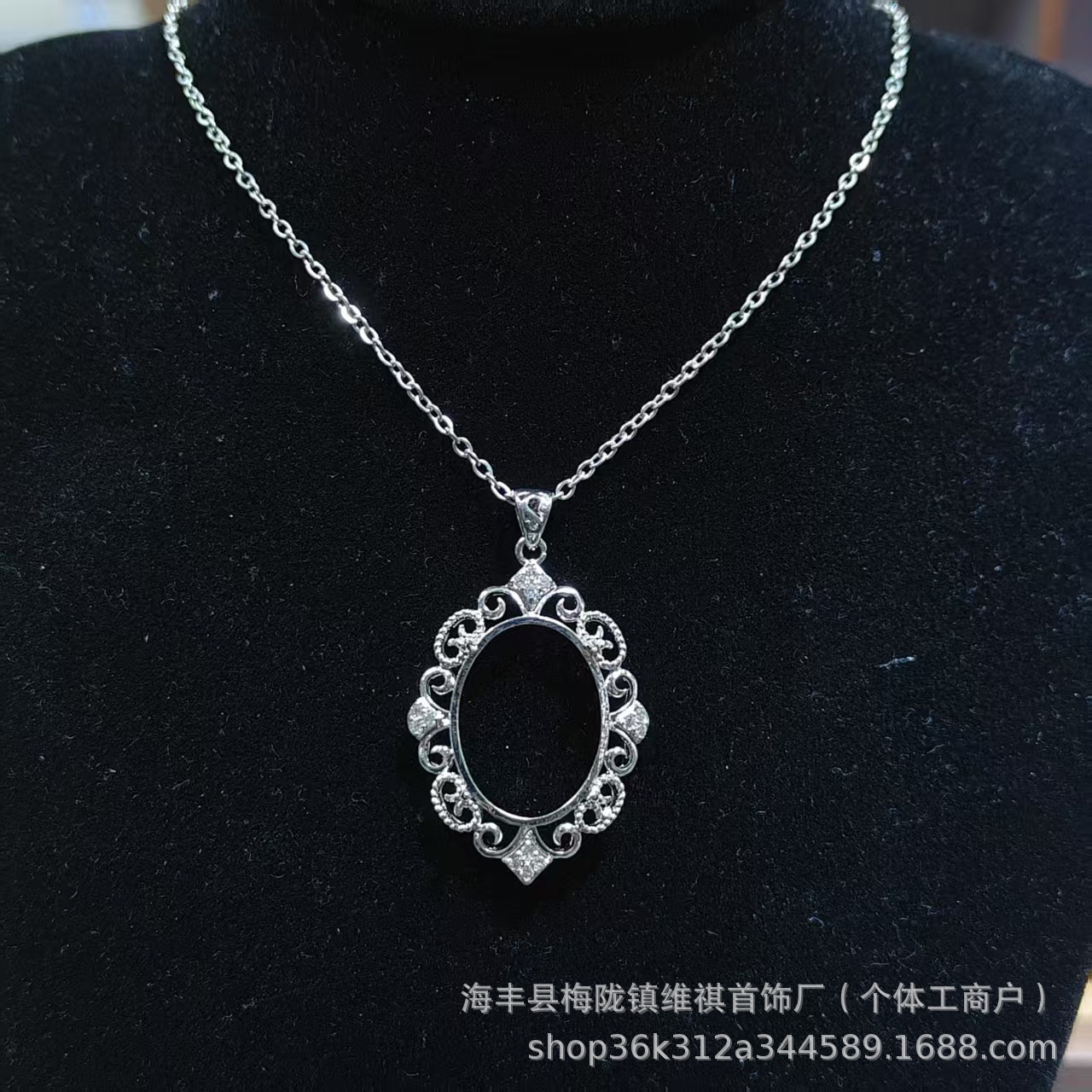 Fashion new pendant empty support copper electroplating white gold egg surface 15*20mm inlay accessories semi-finished products factory