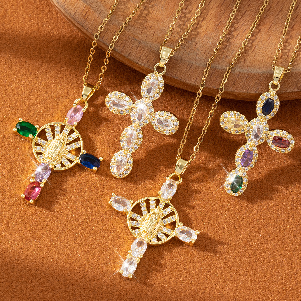 Cross-border Personalized Light Luxury Cross Pendant Necklace Women's Simple and Exquisite All-match High-end Sense Madonna Zircon Jewelry