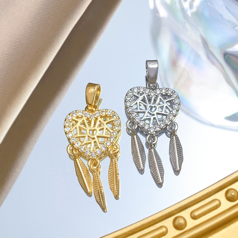 [Copper Real Gold] Braided Love Net Foreign Trade Cross-Border DIY Handmade Jewelry Copper Zirconium Micro-Inlaid Pendant Accessories