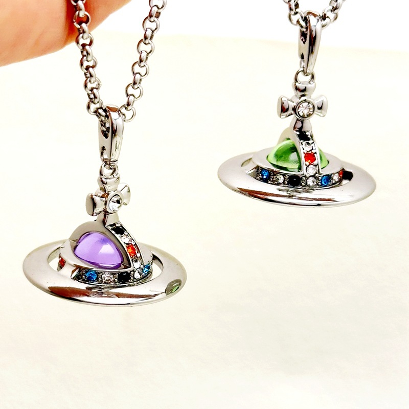 Empress Dowager Stereo Saturn Glass Ball ORB Necklace Woolen Chain Light Luxury Niche High-end All-match Stereo Saturn