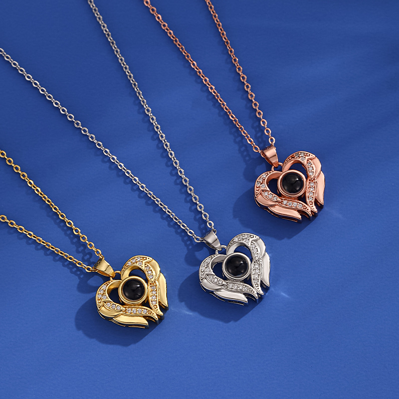 Cross-border hot sale heart-shaped diamond projection 100 languages I love you necklace fashionable light luxury high-grade clavicle chain