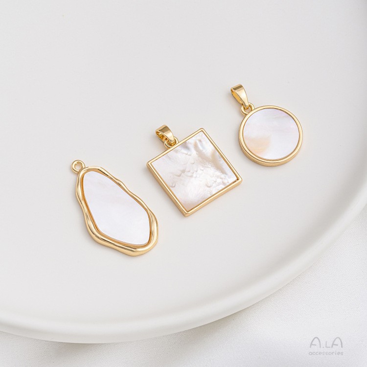 Color Preservation 14K Bag Gold Sticky Natural Shell Square Hangtag Round Irregular Oval Pendant DIY Jewelry Accessories