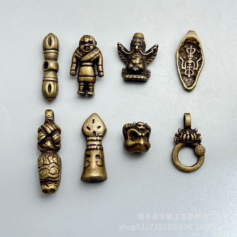 Niche Antique Xizang-Style Small Element Brass Pendant Accessories Xizang-Style Cultural Toy Bracelet Buddha Bead Necklace Copper Pendant Accessories