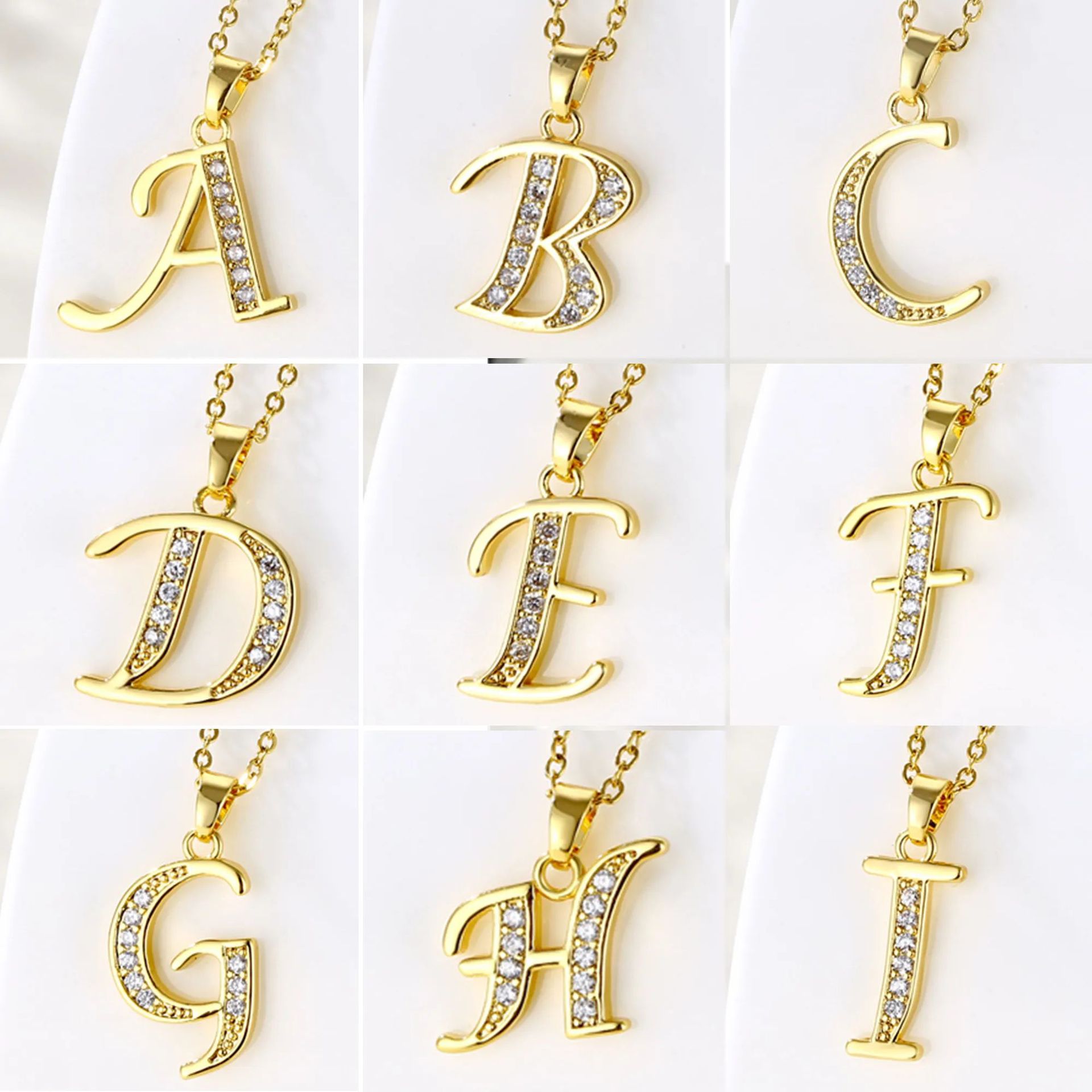 European and American Cross-border Jewelry English Letter Copper Zircon Pendant Women's Stainless Steel Cross Chain 18K Gold Diamond Necklace