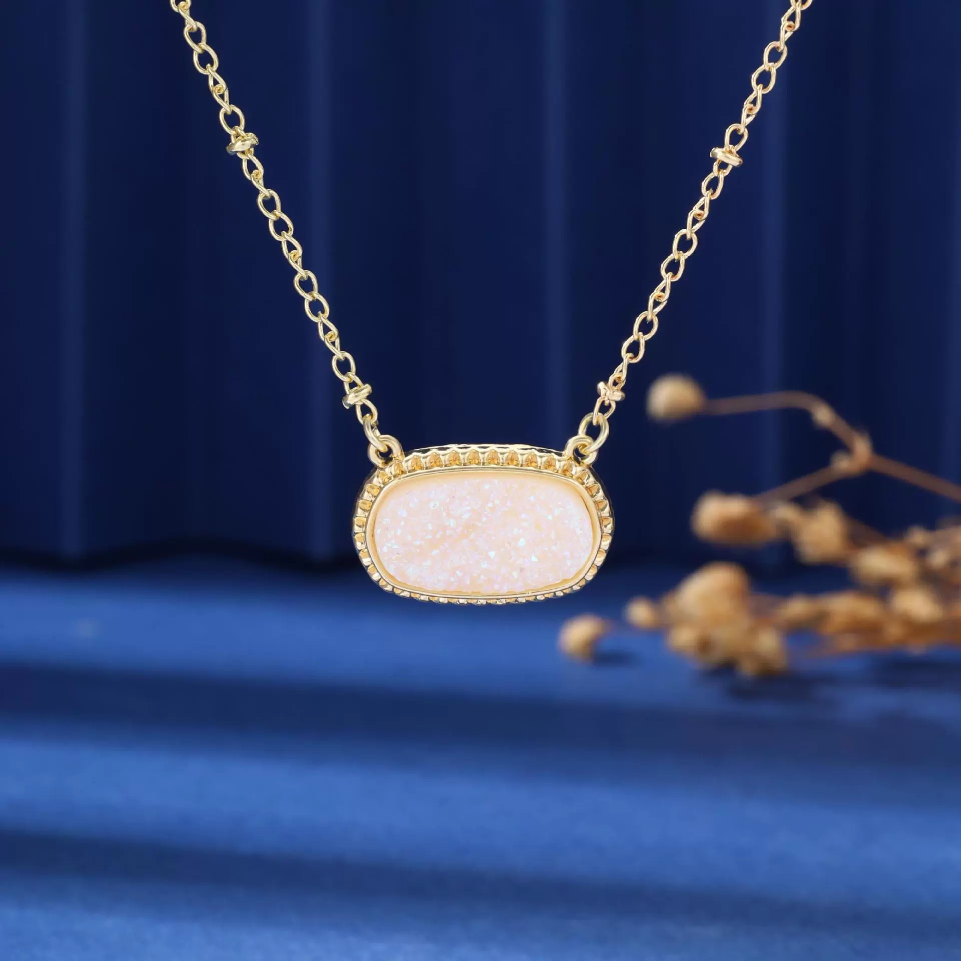 Temu Hot-Selling Supply Oval Imitation Crystal Cluster Clavicle Chain Necklace Women's European and American Wisn Hot-Selling Fashion Versatile Necklace