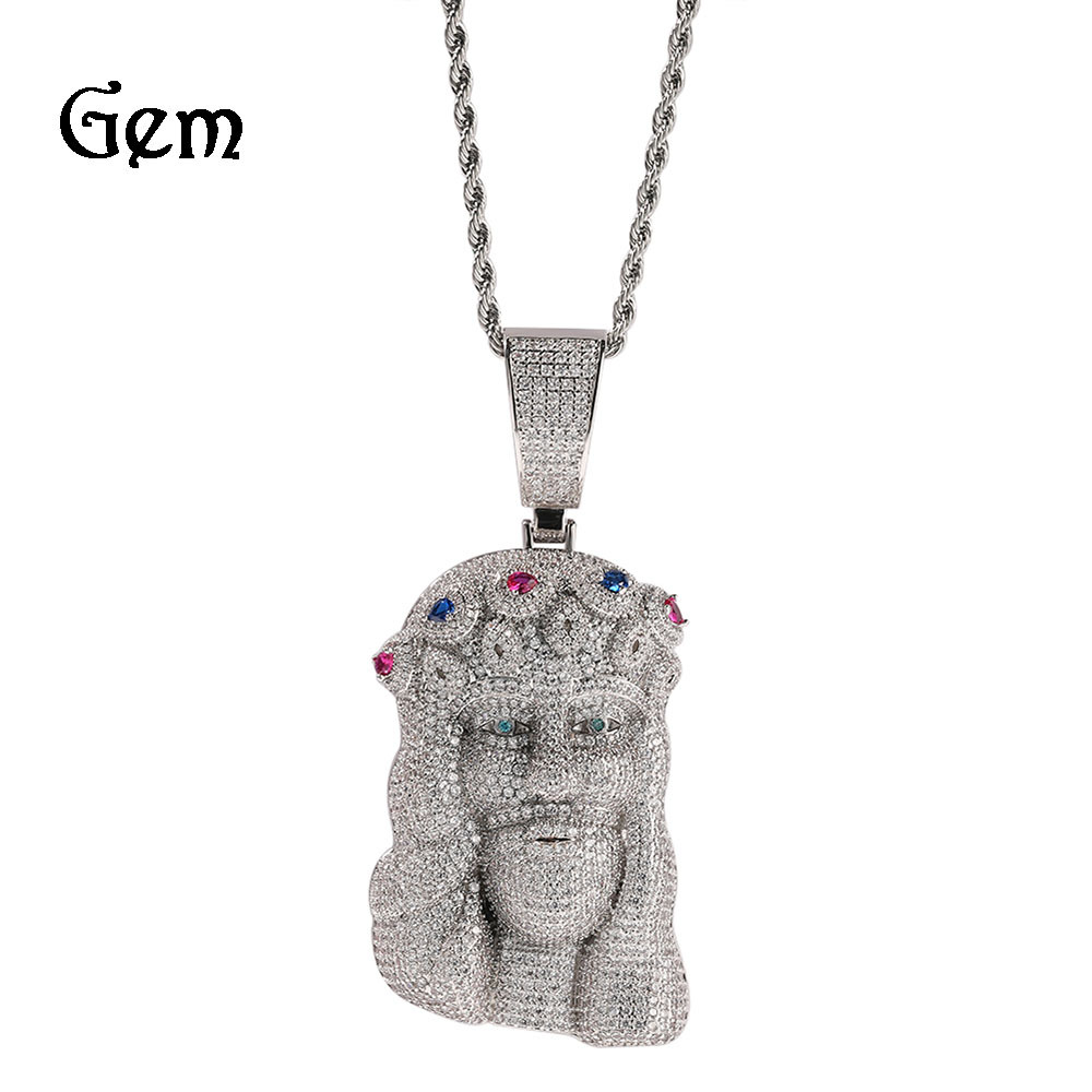 New fashion hip-hop diamond-encrusted portrait pendant necklace men's European and American personality sweater chain nightclub men's jewelry wholesale
