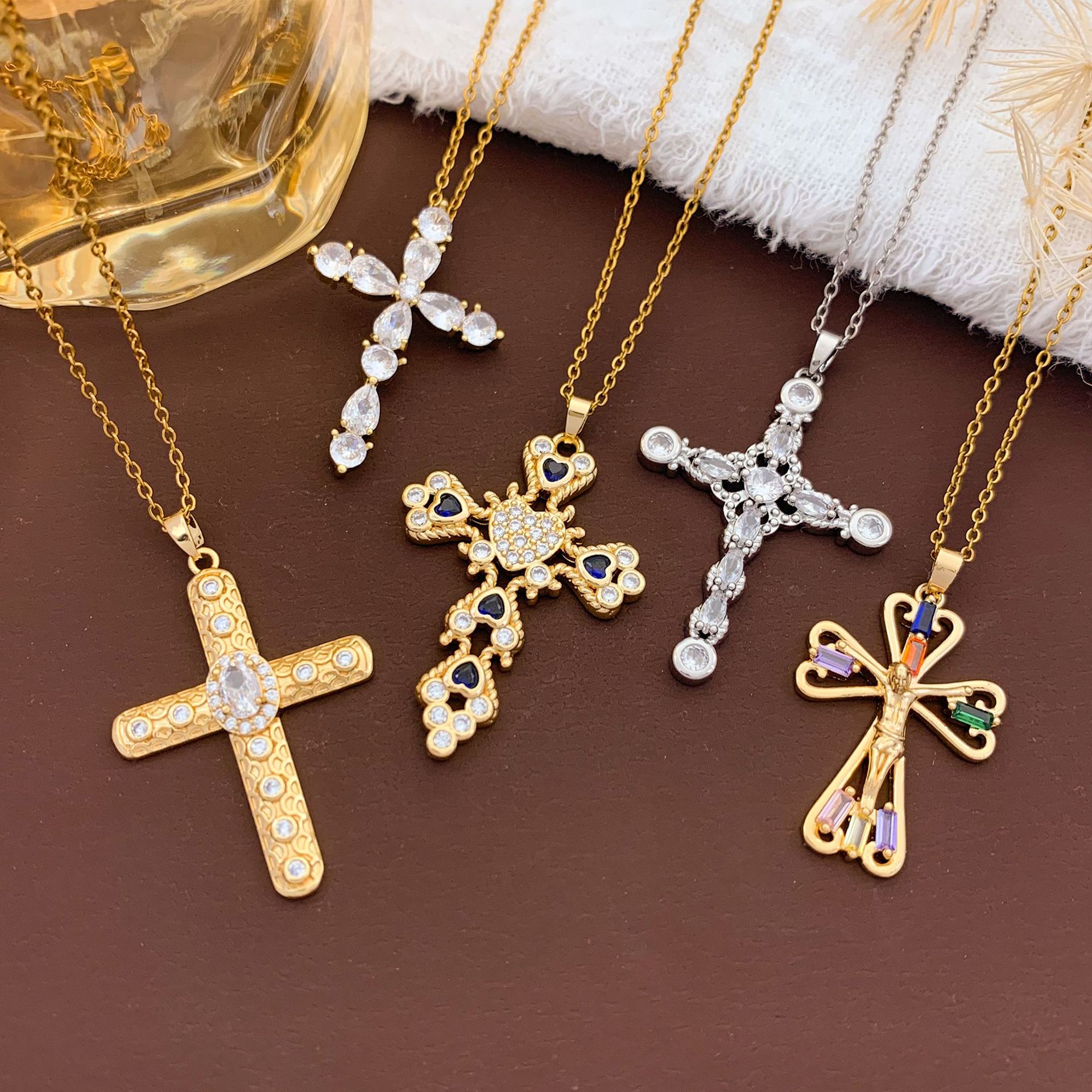 Necklace Cross Ins Punk Cross Necklace Accessories Women's Fashion Personality Niche Design Copper Inlaid Zircon Accessories Women