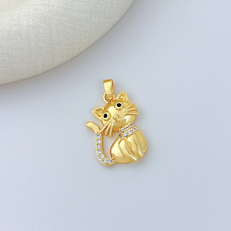 [Copper Real Gold] Playful Kitten Stylish Fashion Export Cross-Border DIY Handmade Jewelry Copper Zirconium Micro-Inlaid Pendant