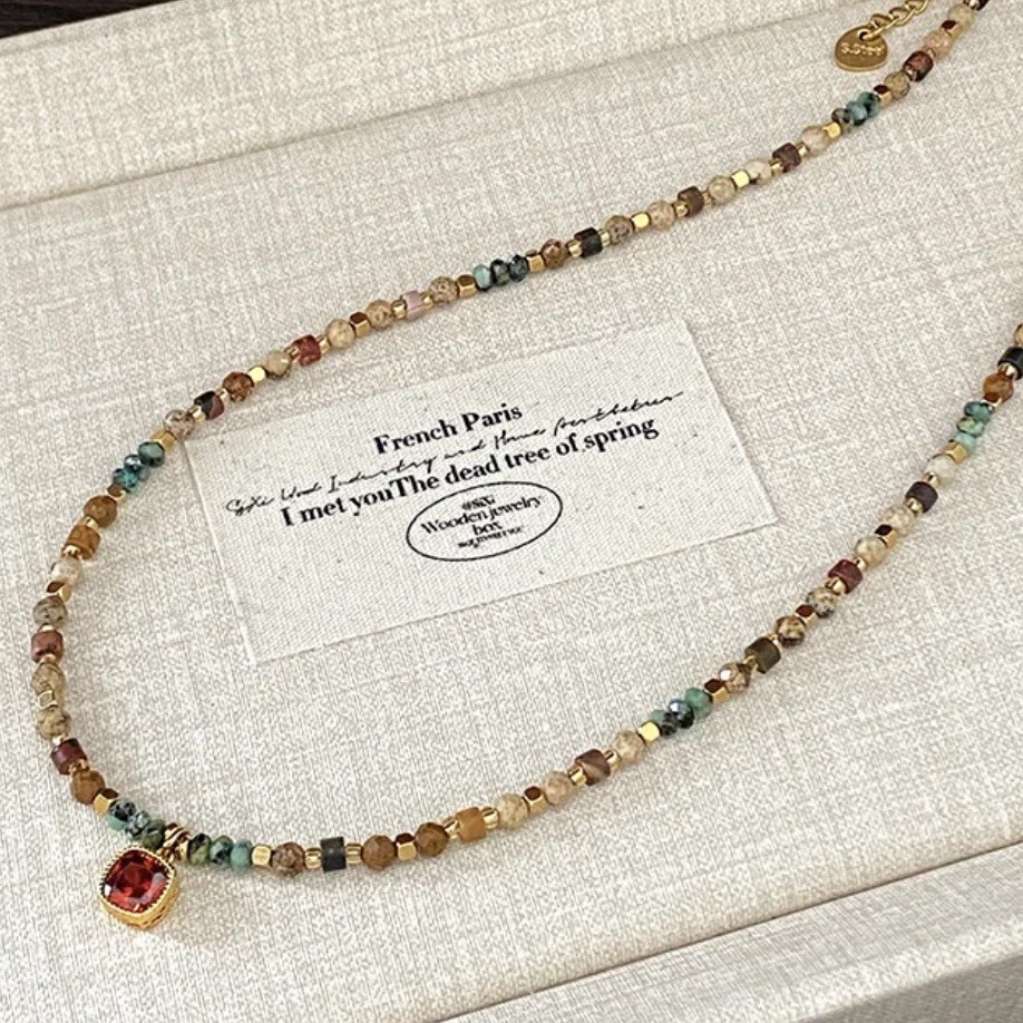 Bohemian vintage red sugar natural stone new Chinese style jewelry women's high-end necklace light luxury design niche