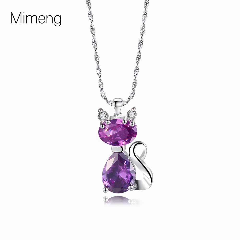 2023 New Amethyst Cat Pendant Necklace Women Simple Kitten Cute Gemstone Clavicle Chain Necklace Chain Wholesale