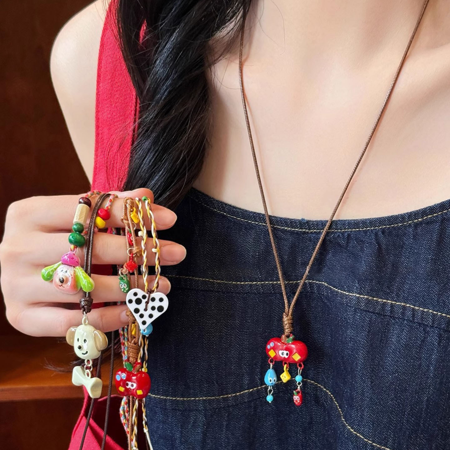 Colorful Cartoon Puppy Necklace, Unique Niche Design Pendant Necklace, Cute and Versatile Braided Rope Necklace
