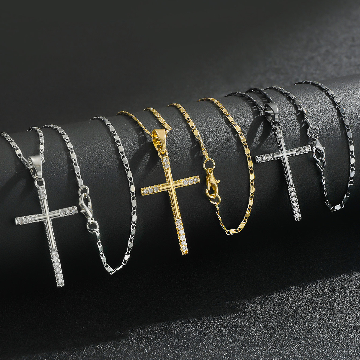 European and American Cross-Border Copper Inlaid Zircon Cross Pendant Men's Necklace Women's Niche High-End Jewelry Popular Accessory