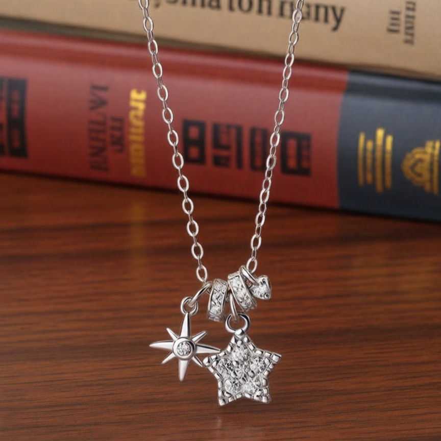 Tiktok Trending Hammered Star Necklace for Women, Niche Light Luxury High-End Jewelry, Fashionable New Pendant Accessories Wholesale