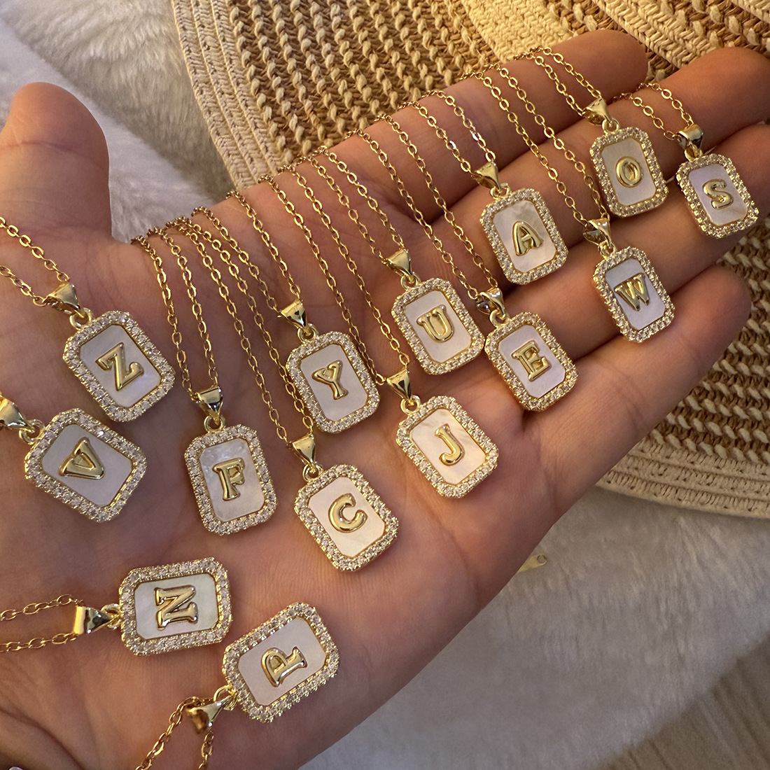 [Bing Meng] 26 Shell Letter Necklace Women's Light Luxury High-Quality 18K Gold Square Pendant Necklace N1573