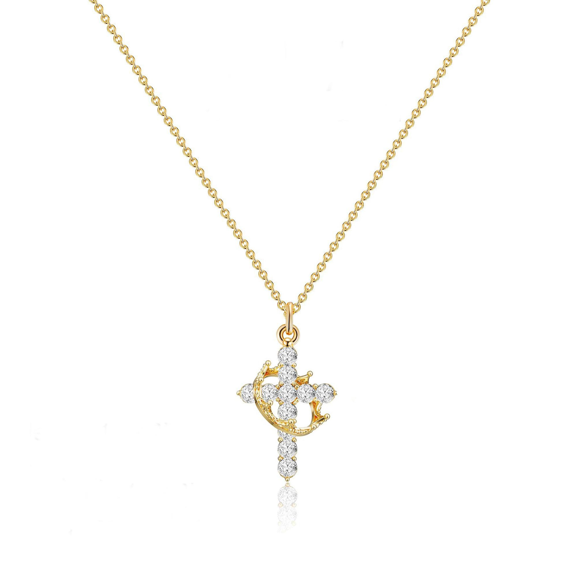 Kindergarten European and American Cross-Border Popular Crown Cross Necklace Copper Plated 5A Eight Hearts and Eight Arrows Zircon Wear-Resistant Niche High-End