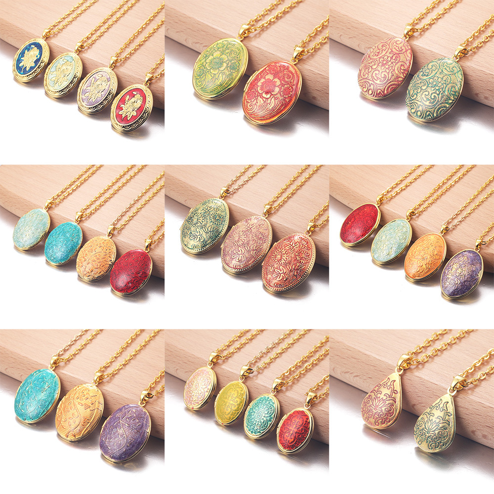 Amazon Cross-Border Best-Selling Jewelry, Various Copper Enamel Multi-Color Love Photo Boxes, Oval Openable Pendant Necklaces
