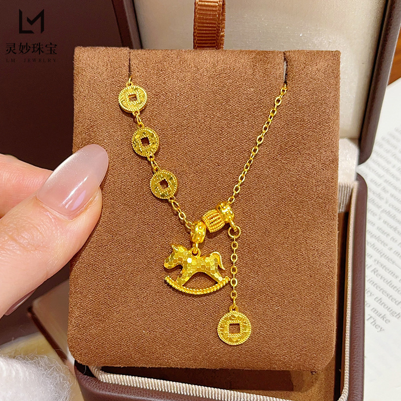 Gold Store Same Style Sand Gold Sparkling Crushed Ice Instant Wealth Tassel Copper Coin Chain Rocker Horse Clavicle Chain Women's Gift