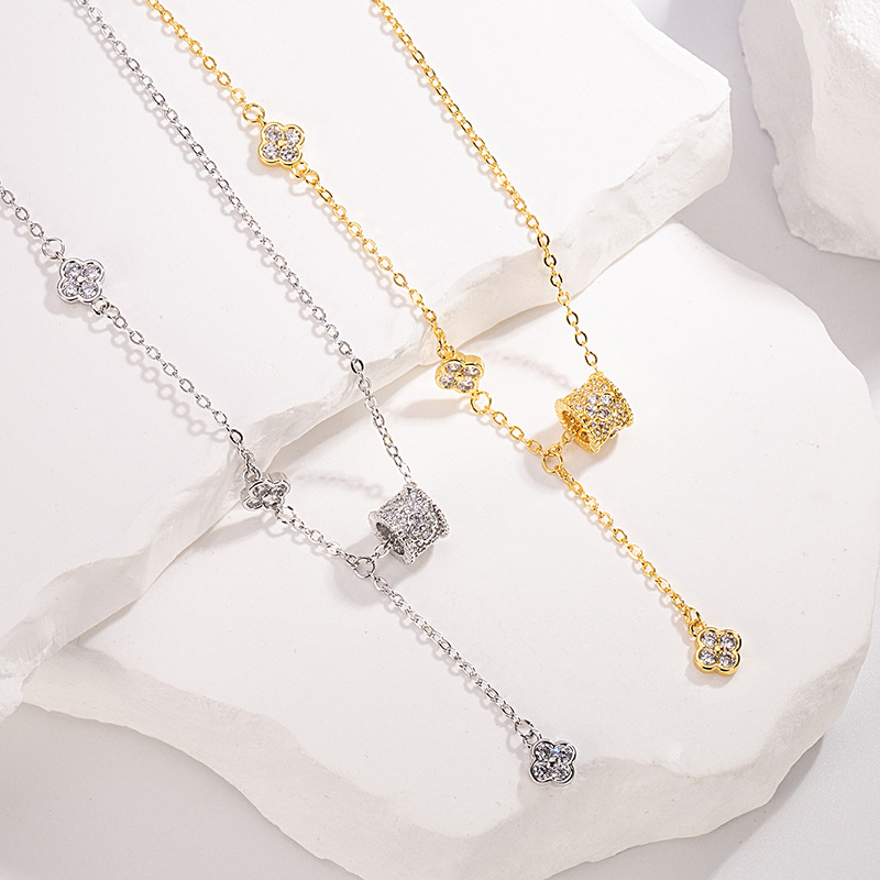 Necklace female Clover cold style ins Diamond-embedded light luxury titanium steel clavicle chain live hot pendant advanced accessories
