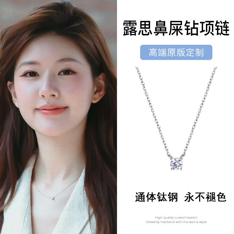 Titanium Steel No Fading Zhao Lusi Same Style Nose Drill Zircon Necklace Accessories Women's High-end Light Luxury Niche Clavicle Chain