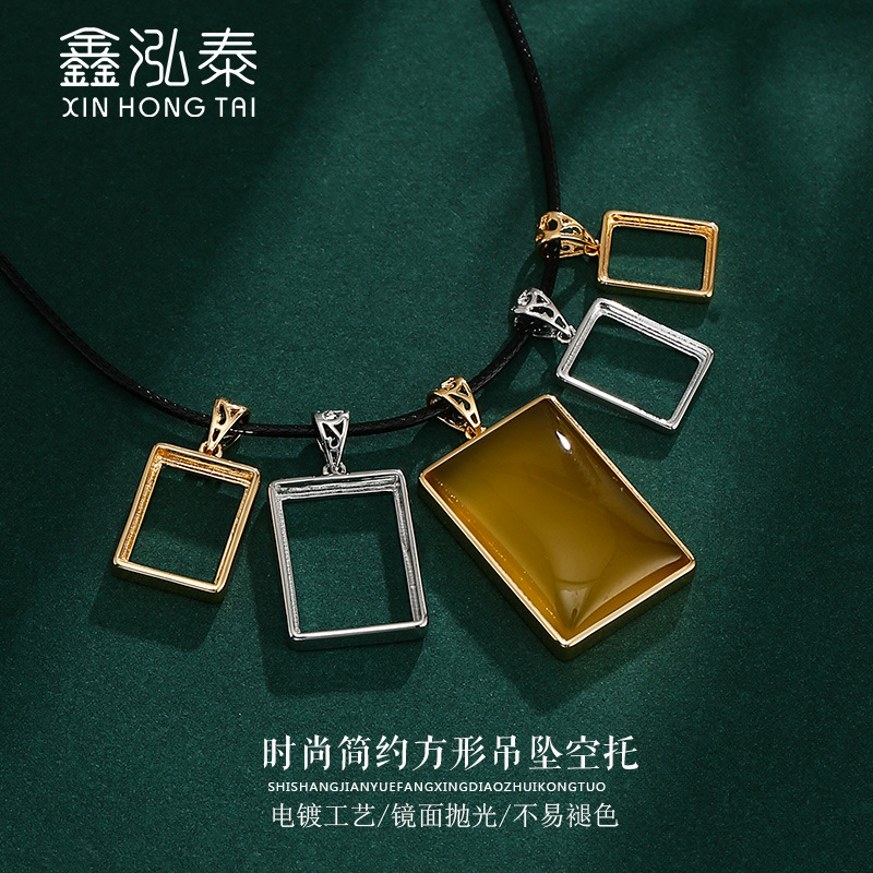 Japanese and Korean simple square pendant empty holder men and women inlaid beeswax Amber turquoise pendant holder diy jade pendant holder