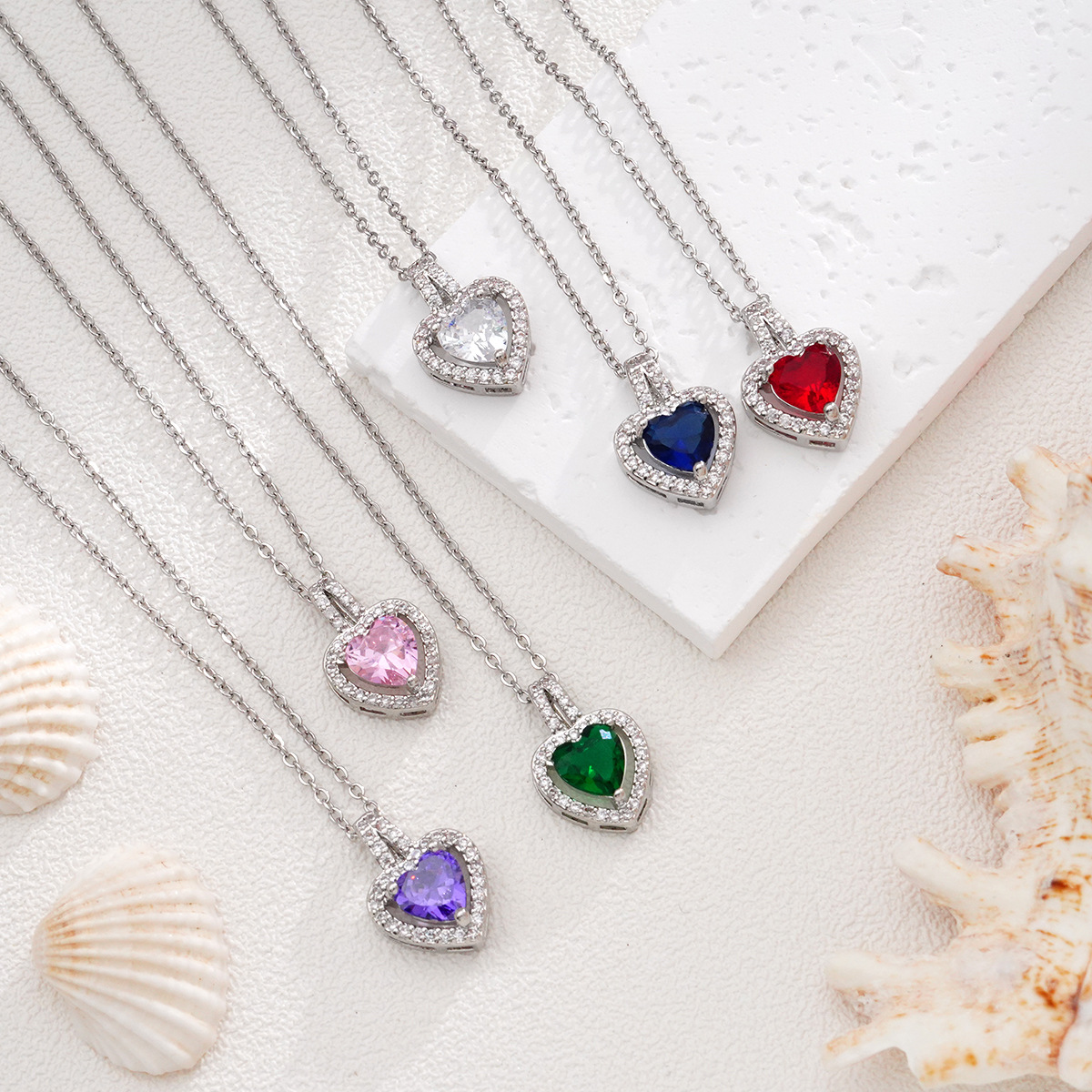 Kashi jewelry European and American cross-border color fashion simple gold-plated titanium steel heart-shaped zircon birthday Stone Love necklace