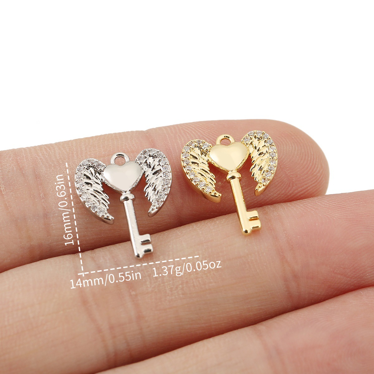 Valentine's Day Gift Copper Plated 18K Real Gold Color-Preserving Angel Wings Heart Heart-Shaped Pendant Single Pendant DIY Jewelry Accessories