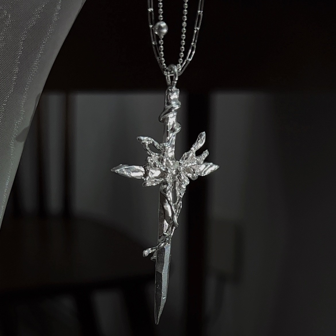 Retro French rose necklace women's high-grade cold style all-match flower trendy clavicle chain hardware girl