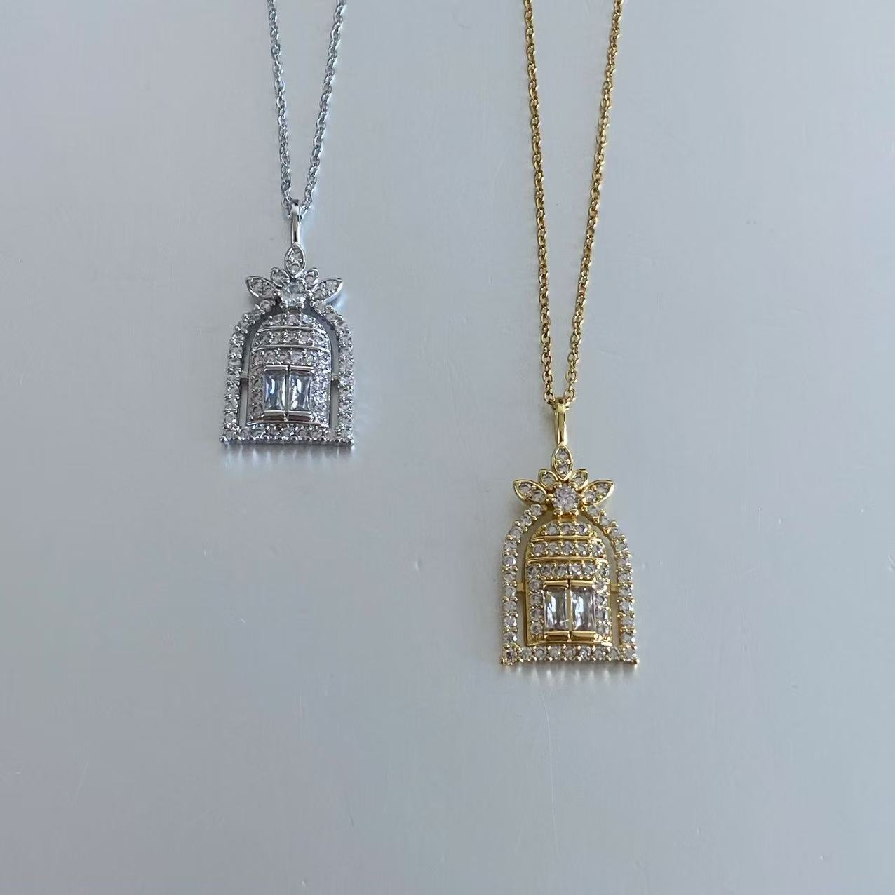 European and American Cross-Border Happiness Door Birdcage Full Diamond Zircon Clavicle Chain Necklace Women's Fashion Accessible Luxury Elegant High-End Lock
