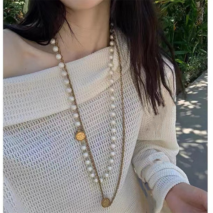 Ouyang Imitation Pearl Pendant Necklace Women's Light Luxury High-end Accessories Design Niche Collarbone Chain