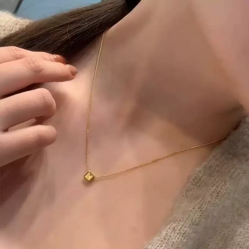 Small Square Diamond Necklace for Women Ins Accessible Luxury Niche Design Classy Clavicle Chain 2023 New Trendy Simple Pendant