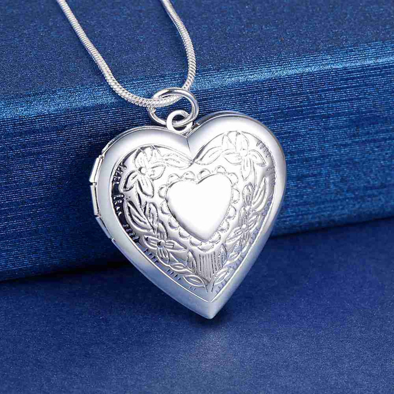 Cross-border Hot Sale with Chain 925 Silver Heart Photo Frame Pendant Snake Chain Necklace Jewelry LN067