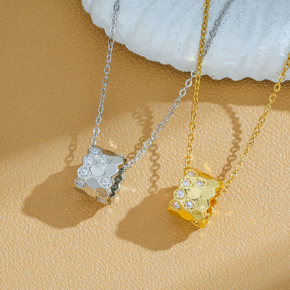 2025 New Honeycomb Titanium Steel Necklace for Women Thickly Plated 18K Gold Hexagonal Honeycomb Diamond Simple and Elegant Clavicle Chain