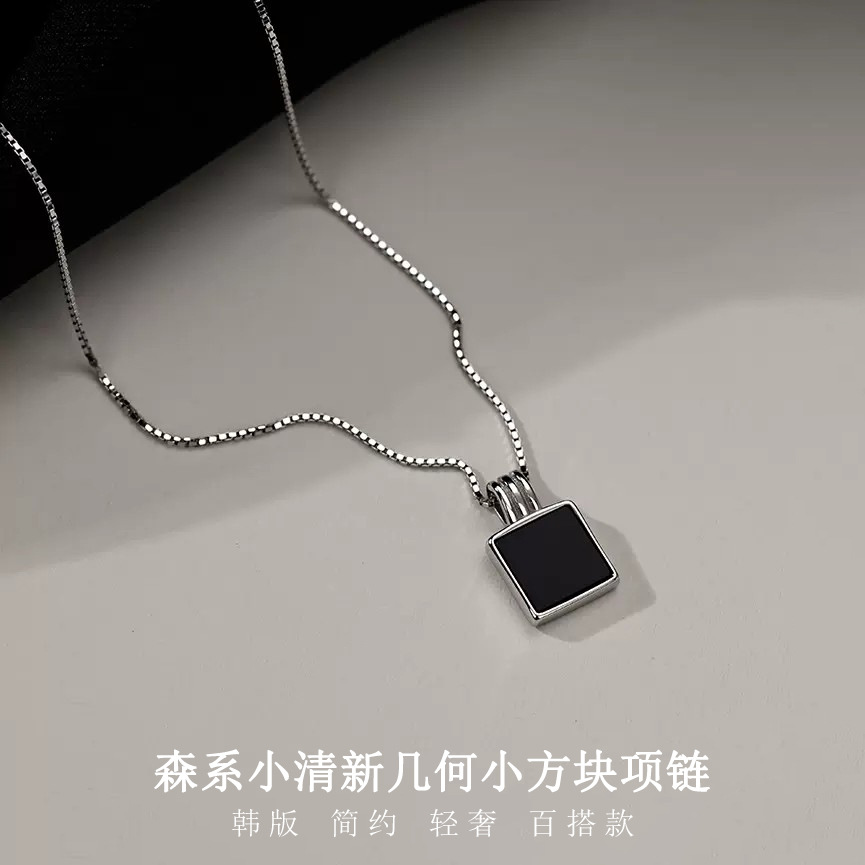 Korean Style Black Square Brand Pendant Necklace Women's Light Luxury Fashion Niche Design High-end Sense Exquisite All-match Collarbone Necklace