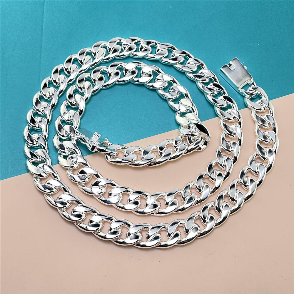 Xingguang jewelry men's 10mm square box buckle side necklace 20 inch 24 inch foreign trade 925 silver plated spot