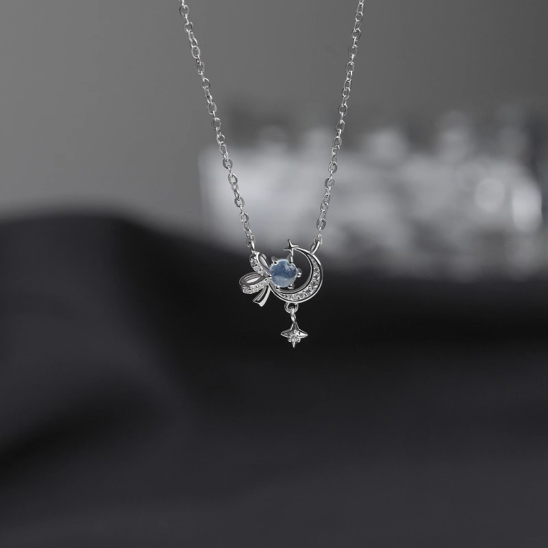 Niche Design Sense Star Moon Necklace Female Personality Fresh Sense Moon Tassel Flash Zirconium Pendant Clavicle Chain Shake Tone Same