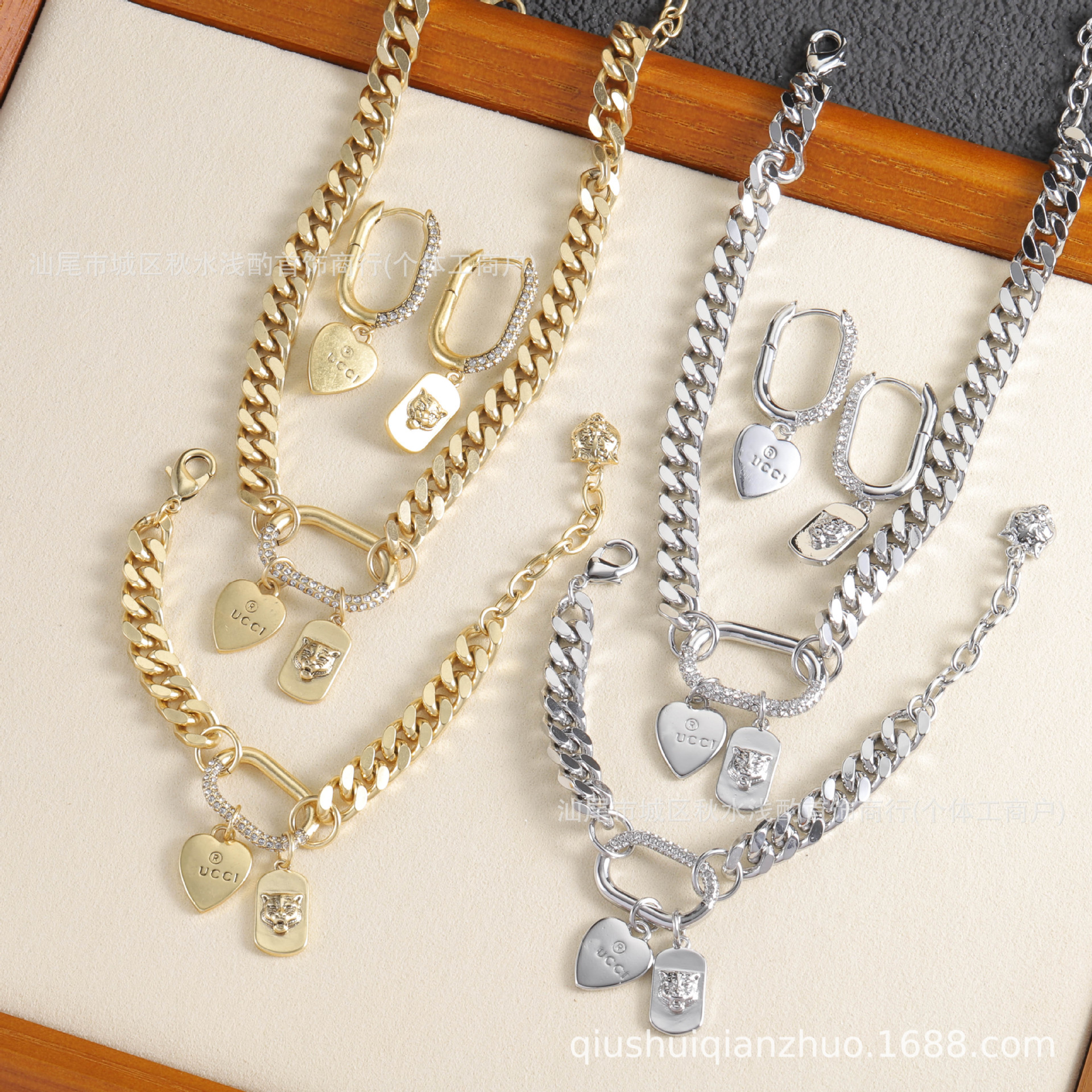 Gujia g European and American Heart Letter Brass Necklace Women's Classic Tiger Head Bracelet Fashion Accessible Luxury Diamond 925 Earrings