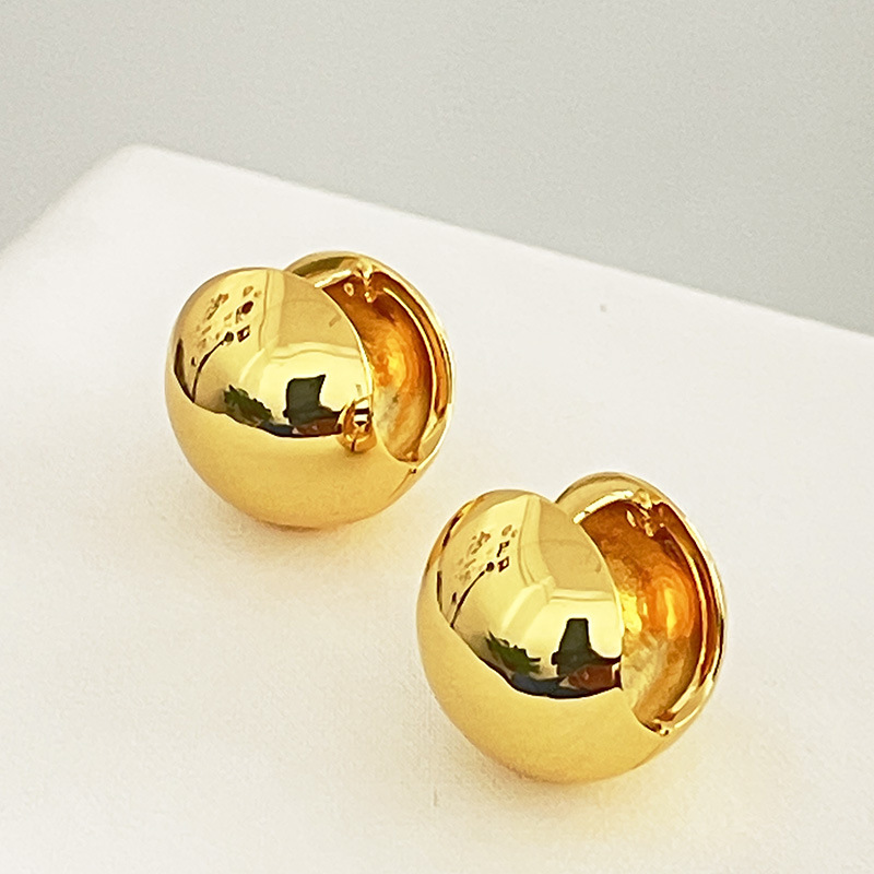European and American Niche 15mm Ball Button Semicircle Earrings Brass Gold Plated Retro Cold Style Simple Elegant Earrings Trendy