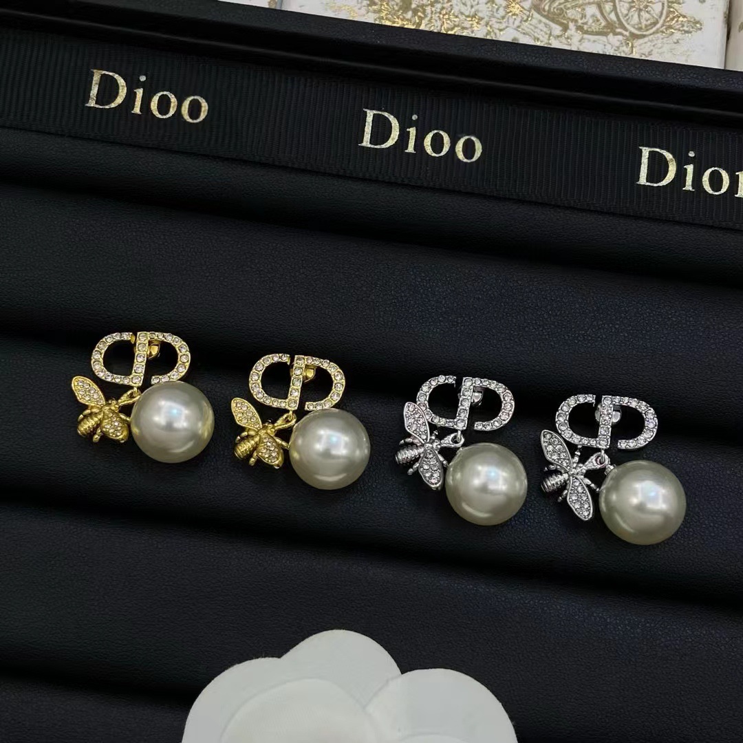 Dijia classic bee pearl earrings 2024 new brass D letters earrings earrings female socialite wholesale