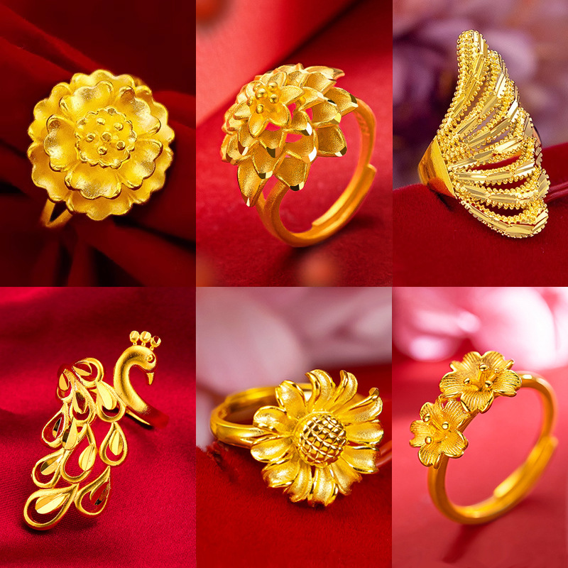 Xiaohongshu Style Phoenix Tail Ring Female Phoenix Index Finger Ring Brass Gold-Plated High-Quality Elegant Peacock Ring Supply Wholesale