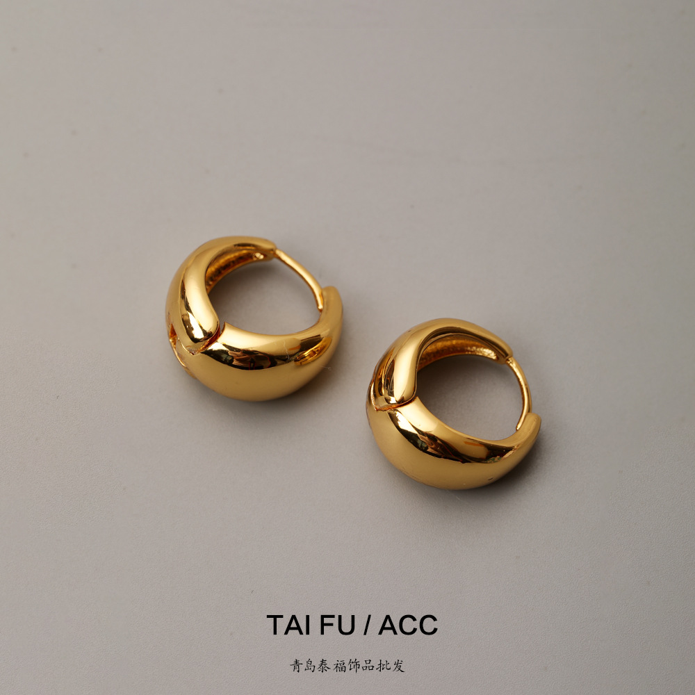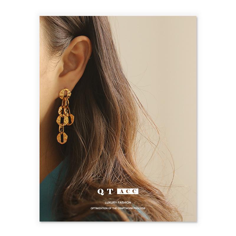 High color retention brass plating real gold European and American fashion personality design sense round piece chain terms retro earrings earrings