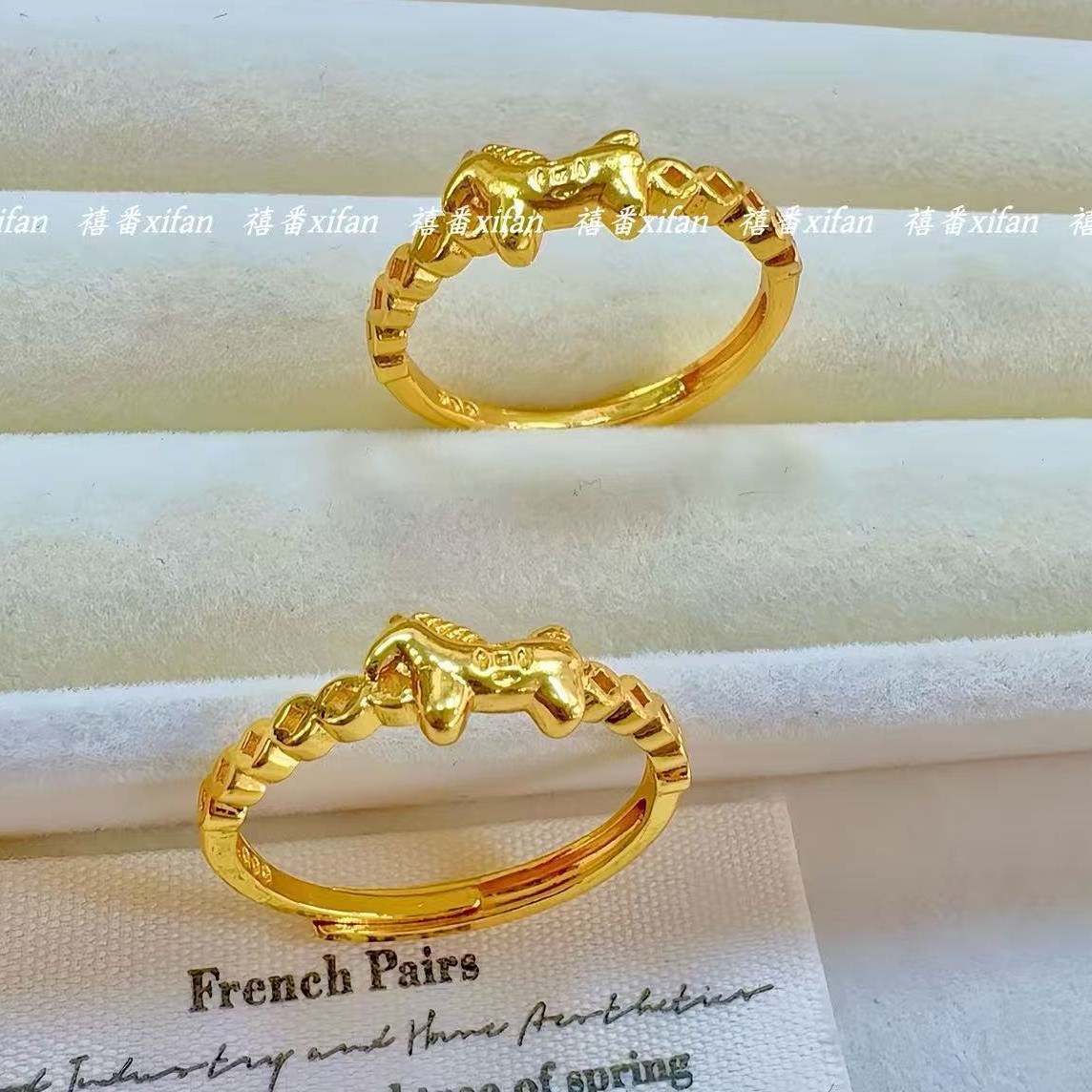 Year of the Horse New Ancient Method Pony Ring Jewelry Brass Gold-Plated Open Pony Ring for Women Long-Lasting Color Ring