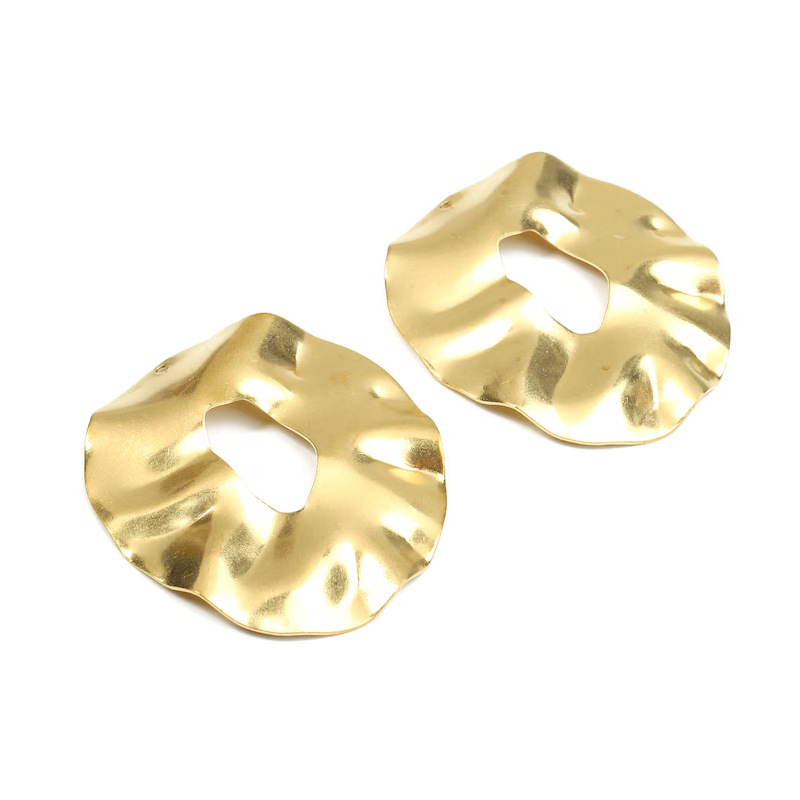 Brass Wave Texture Round Earrings Charm European and American Cross-Border Export Hot Selling DIY Jewelry Accessories-Pp2670