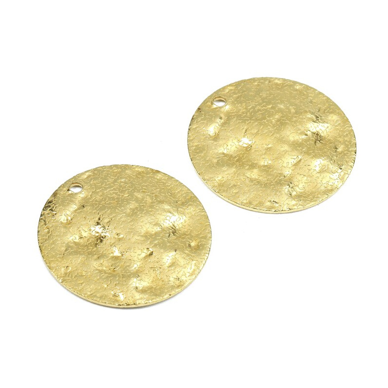 Brass Wave Texture Round Earrings Charm Pendant European and American Cross-Border Popular DIY Jewelry Accessories-Pp2574