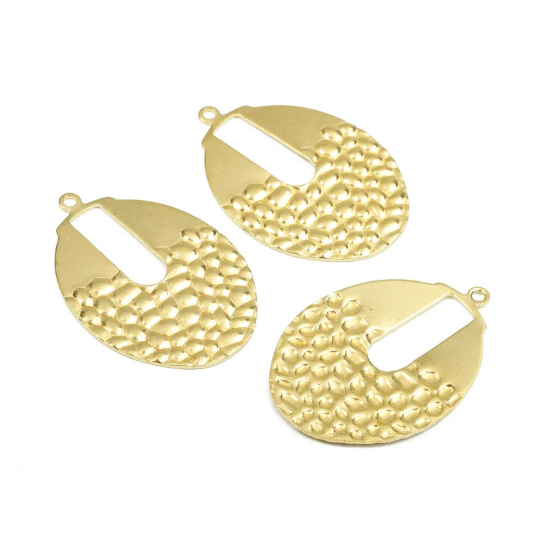 Brass Oval Concave and Convex Texture Earrings Charm Pendant European and American Cross-Border Popular DIY Jewelry Accessories-Pp2531
