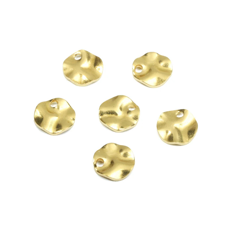 Brass Wave Texture Round Earrings Charm Pendant European and American Cross-Border Popular DIY Jewelry Accessories-Pp2574