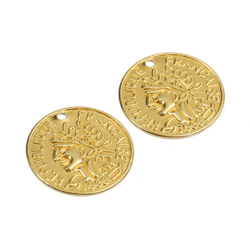 Brass Round Coin Earrings Charm Pendant European and American Cross-Border Popular Handmade DIY Jewelry Accessories-Pp2551