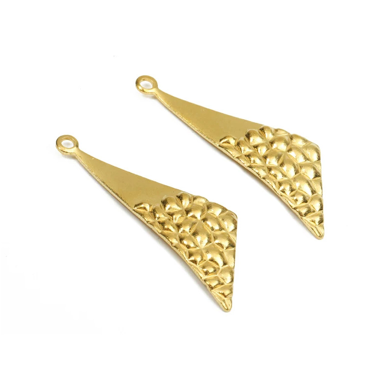 Brass Concave and Convex Texture Triangular Earrings Charm Pendant European and American Cross-Border Popular DIY Jewelry Accessories-Pp2534