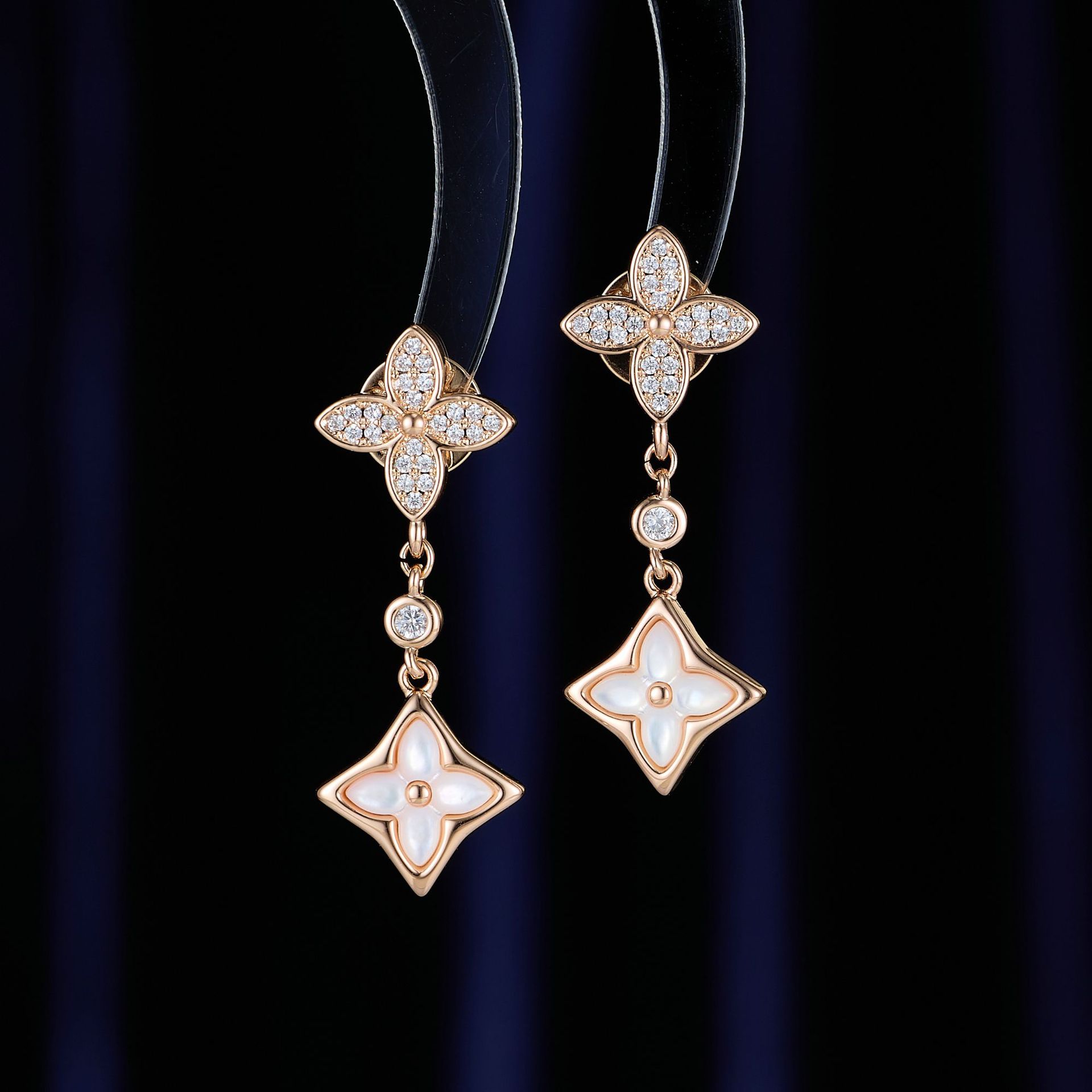 New Luxury High-End Rose Gold V Gold Plated 18K Presbyopic White Shell Clover Stud Earrings Fashion Versatile Earrings