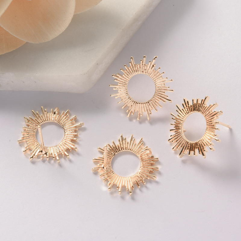 Foreign trade Hot New hollow star stud earrings wholesale fashion big round diy with hanging ear pin real gold
