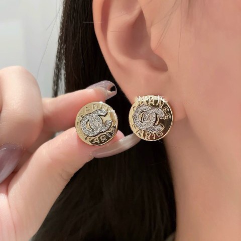 25C Chanel Double C Full Diamond Letter Round Stud Earrings, Chanel Grandma Fashion Light Luxury Temperament Earrings, High-End Earrings for Women